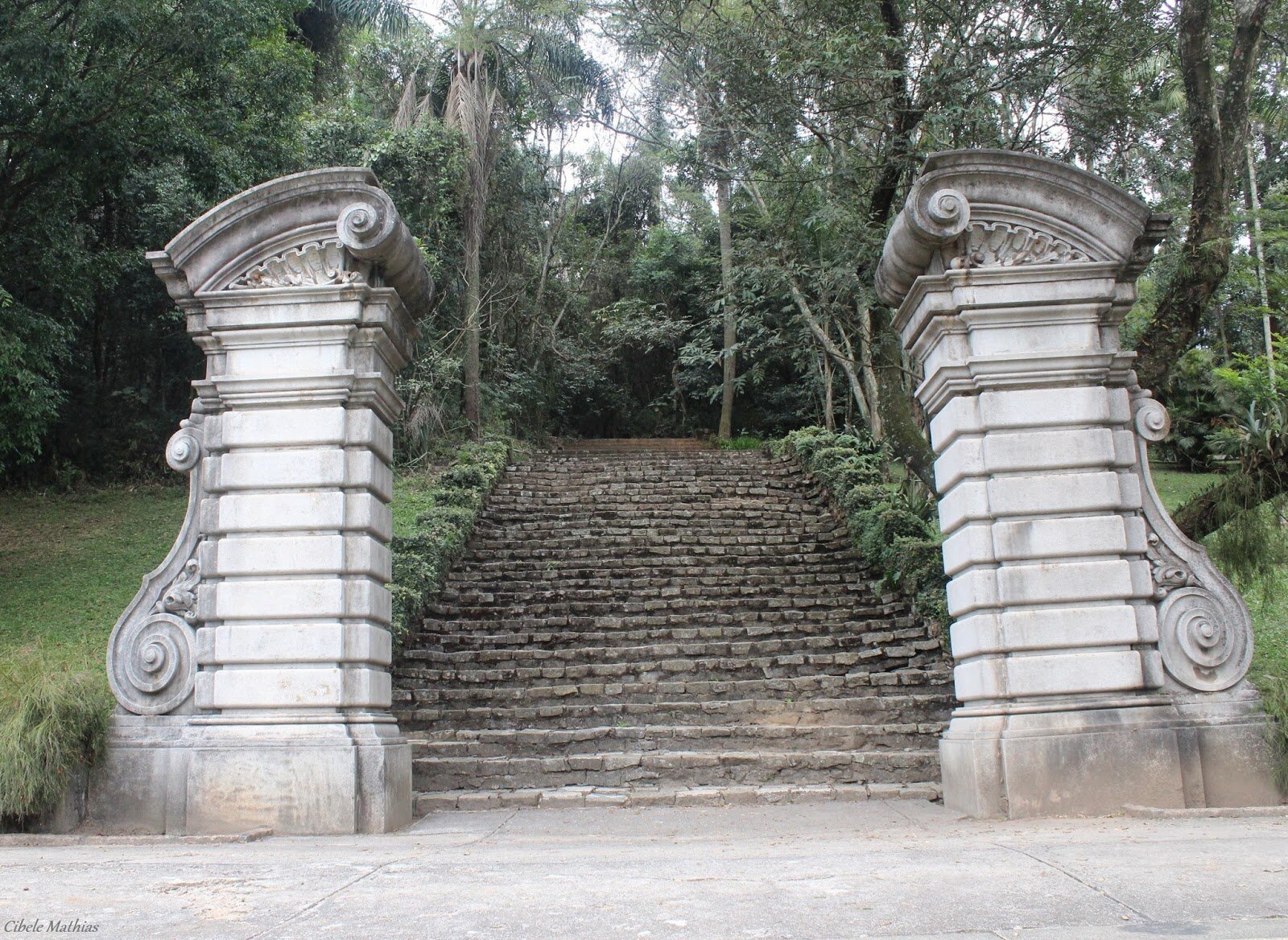 Nesta fotografia de 2014, observa-se a escadaria conhecida como Jardim de Lineu, uma das construções que integram o complexo do Jardim Botânico de São Paulo.