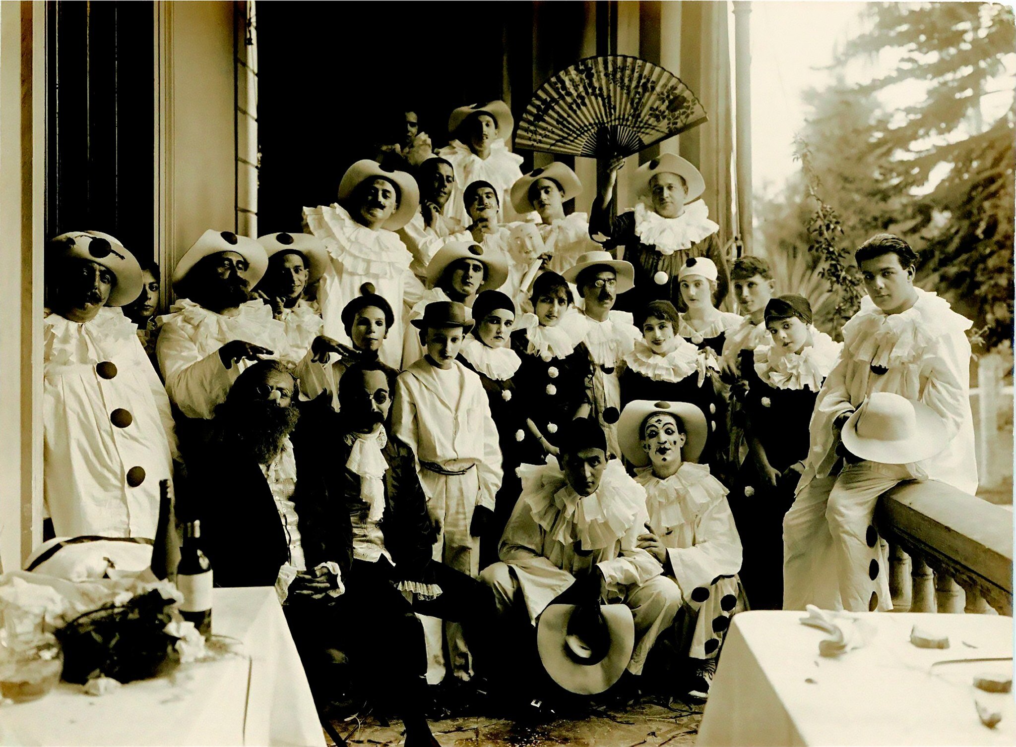 Nesta fotografia de 1917, vemos o clássico grupo de pierrôs e colombinas promovido por Freitas Valle. No momento do registro, os participantes encontravam-se na Villa Kyrial, localizada na Vila Madalena.